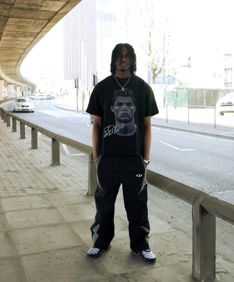 Bold Ronaldo portrait print stands out effortlessly on black.
