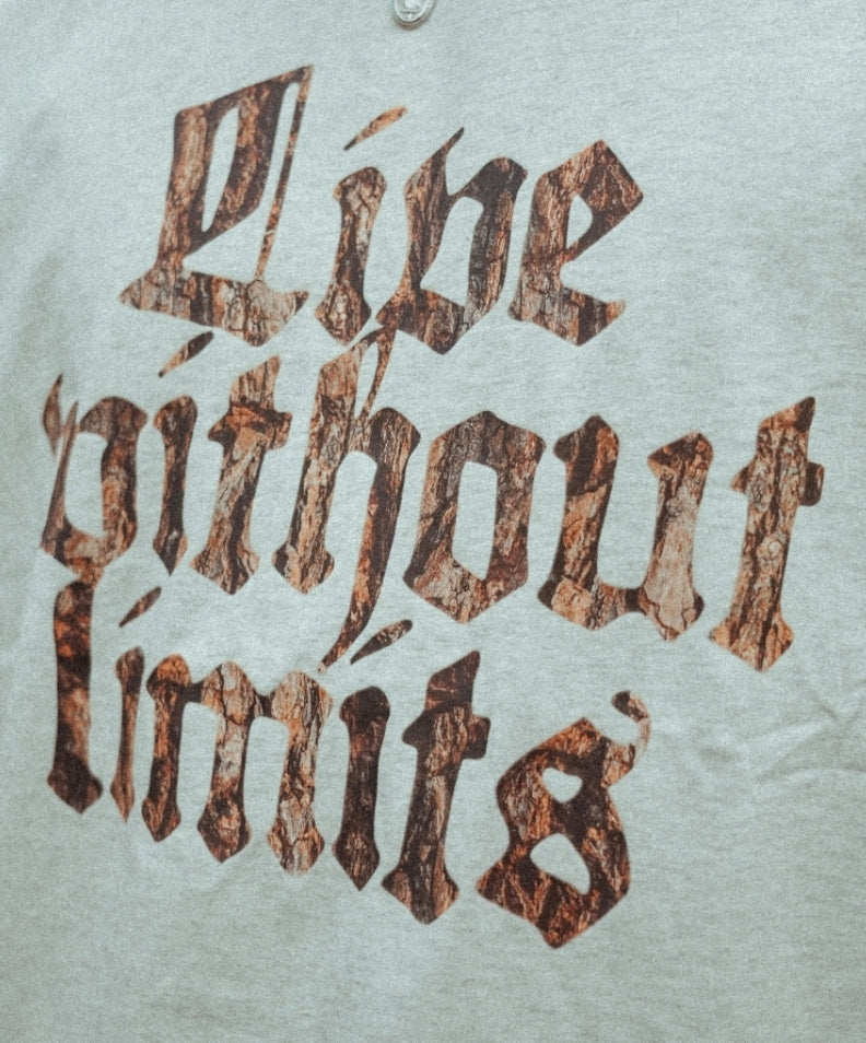 Bark-textured lettering paired with bold “No Limit” message.
