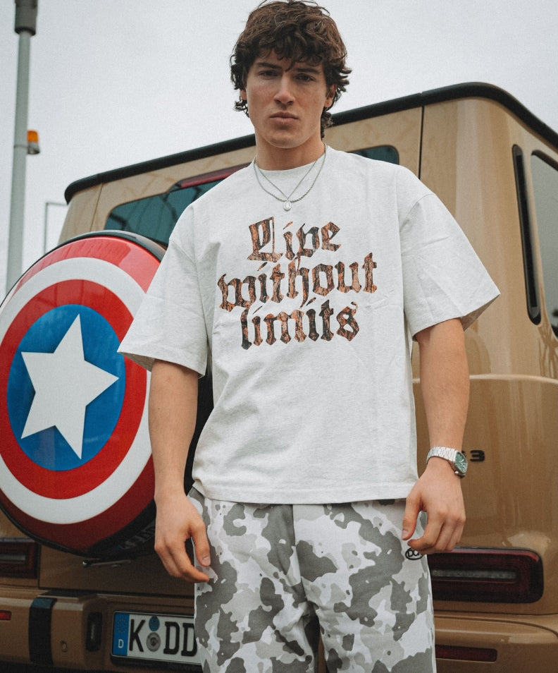 • Details: Camo "Live Without Limits" print on the front and DCRB logo on the back of the neck for a bold yet minimalist touch.