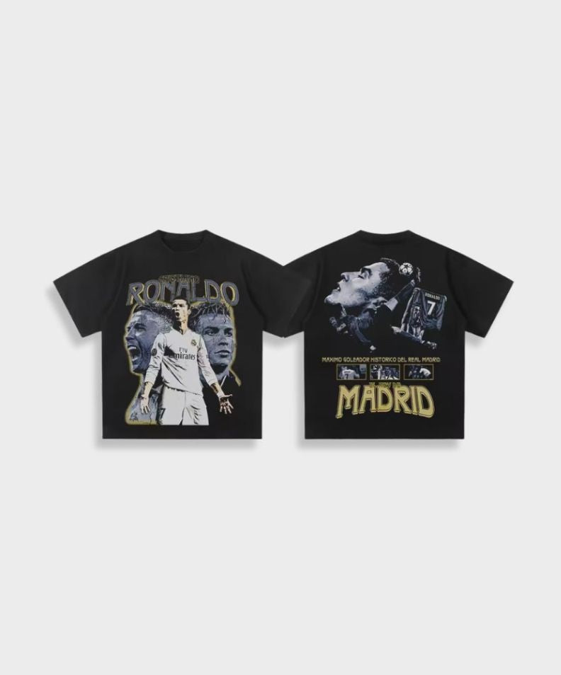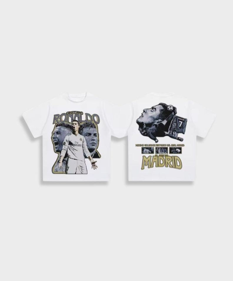 Elevate your wardrobe with our DCRB CR7 Madrid Tee, where football legacy meets casual comfort. Crafted from premium cotton, this tee celebrates the iconic CR7 era at Madrid with a clean round neck and relaxed fit. Designed for fans of the game and lovers of everyday street style, this essential piece brings a subtle statement to your off-duty look.